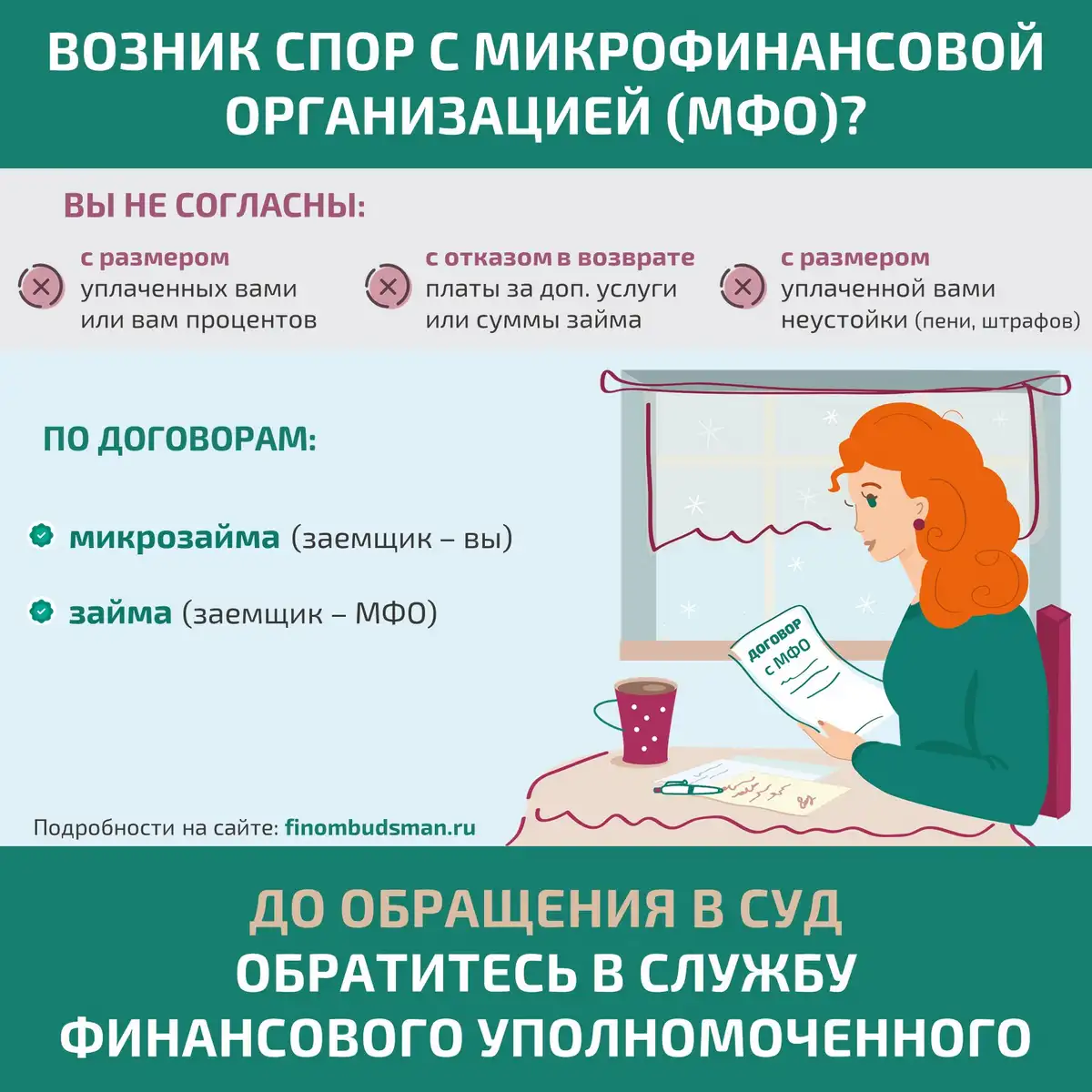 - с отказом в выплате вам процентов за пользование займом микрофинансовой организацией,