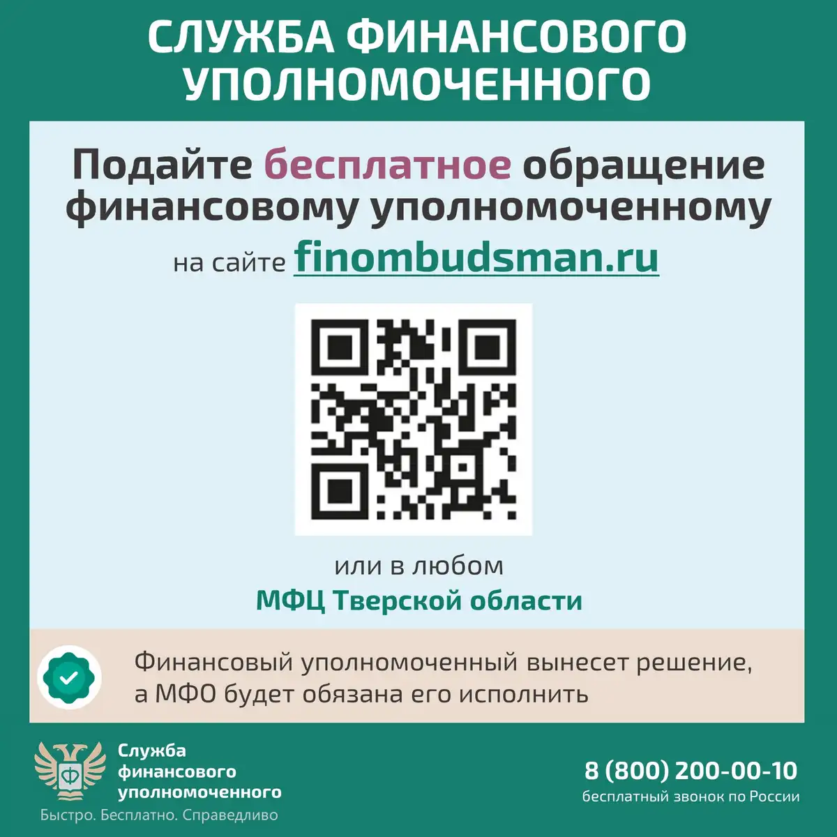 Направить обращение финансовому уполномоченному можно через личный кабинет на сайте finombudsman.ru или через любой МФЦ Тверской области.
